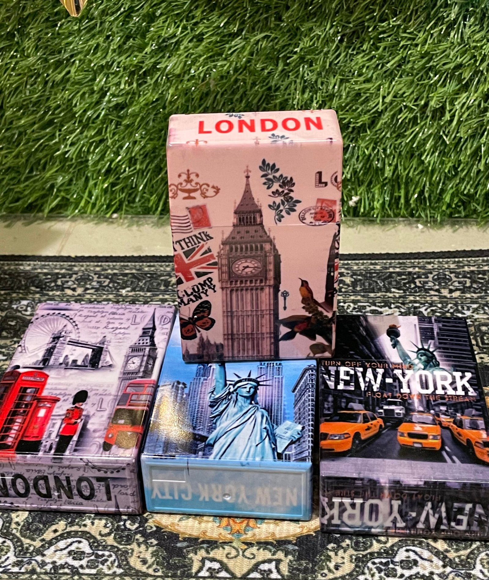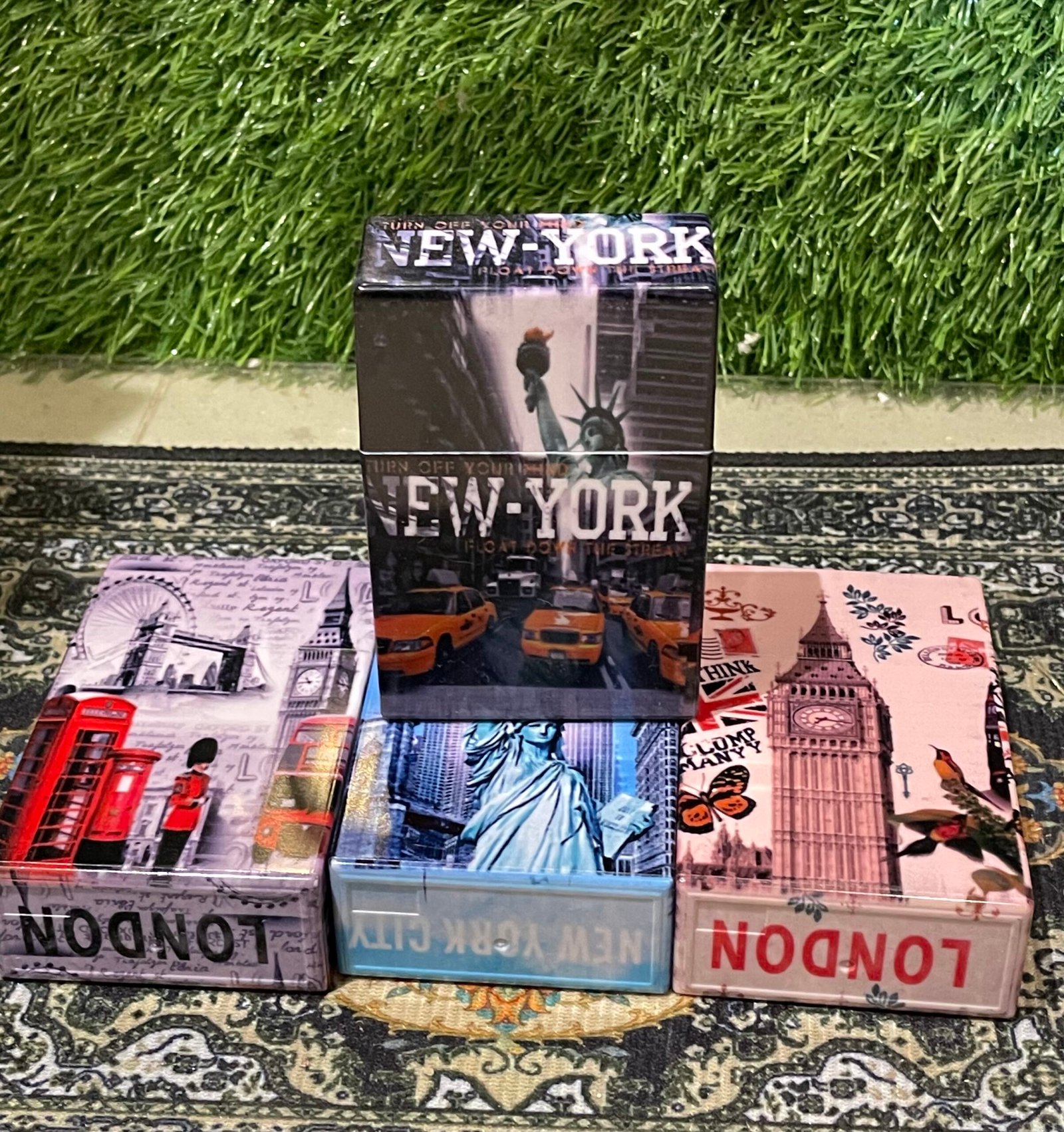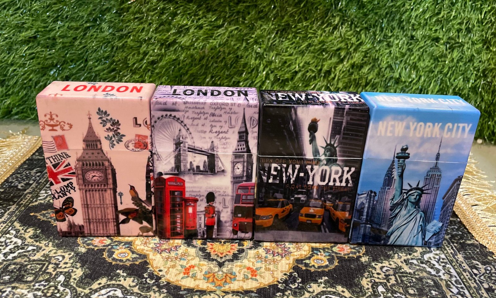 Stylish, durable cigarette case with iconic London and New York designs—elegant, travel-inspired, and convenient for everyday use.