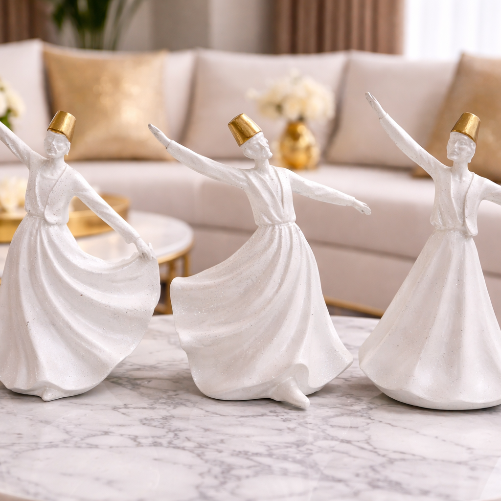 Bring grace, spirituality, and artistic beauty into your space with this Elegant White Sufi Dervish Figurines Set. Inspired by the mesmerizing whirling dance of Sufi dervishes, these figurines symbolize peace, harmony, and a deep spiritual connection.