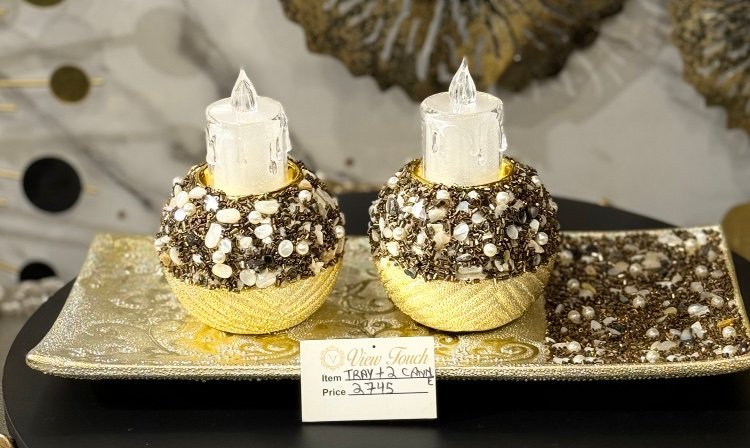 Be the first to review “Elegant 3 Pcs Glass Candle Holder Set with Golden Mirror Tray” Cancel reply