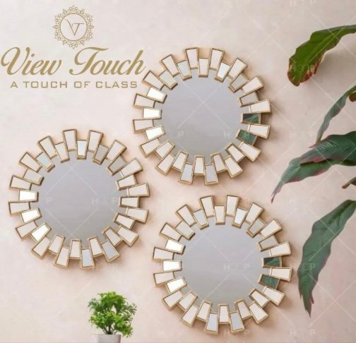 Golden Wall Mirror Set – 3 Pcs