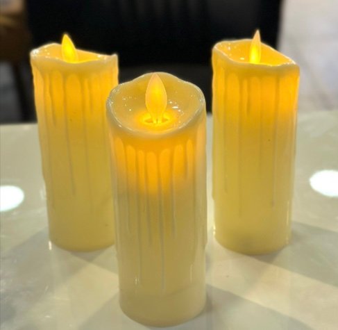Safe and stylish LED candle with a realistic wax-drip finish — long-lasting and perfect for home décor, events, and gifting.