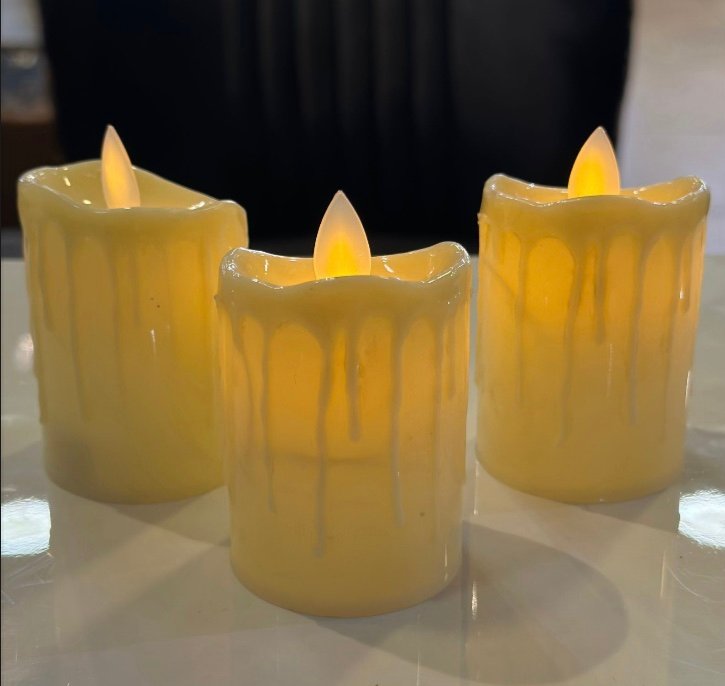 Safe, stylish, and long-lasting LED candle with a realistic wax-drip finish — perfect for home décor, events, and gifting.