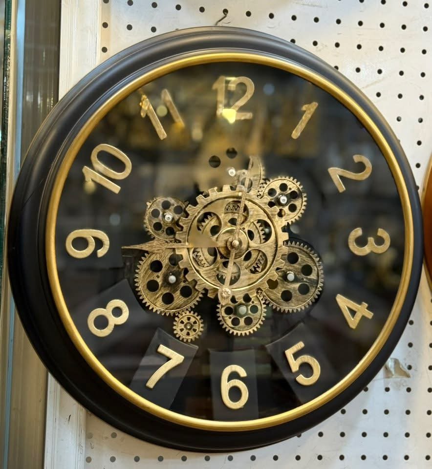 Add a bold statement to your home or office with this Vintage Industrial Gear Wall Clock. Designed with a sleek frame and accented by golden numerals, it blends classic style with modern industrial charm. The centerpiece features decorative golden gears, giving it a mechanical and steampunk-inspired look. Perfect for living rooms, bedrooms, offices, cafes, or restaurants, this clock is both functional and artistic. With its clear numbers and stylish design, it not only keeps time but also enhances your décor with a sophisticated vintage flair.